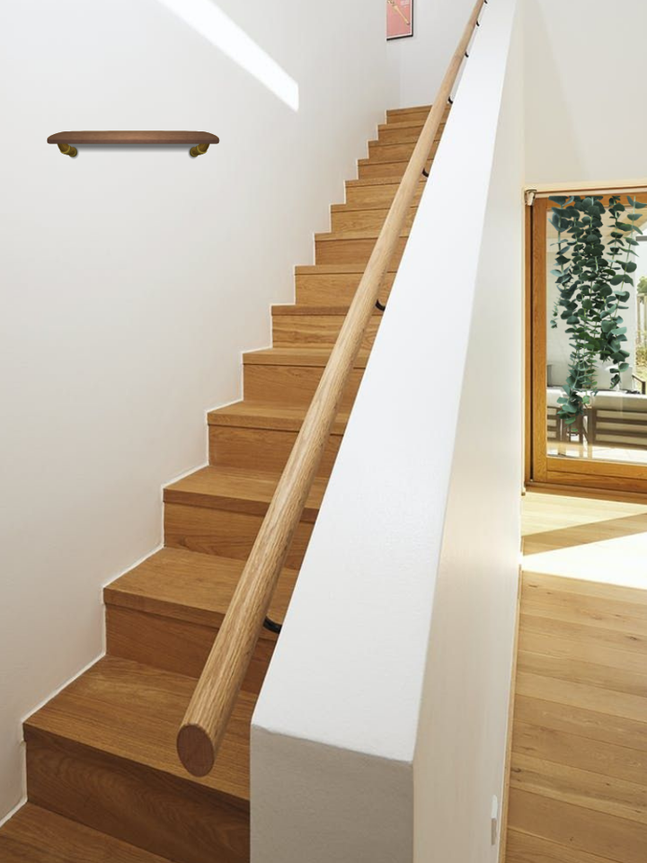 ราวจับบันไดไม้ทรงกลม ติดตั้งง่าย ปลอดภัย กันลื่น ทำจากไม้โอ๊คสีขาว แข็งแรง ทนทาน เหมาะสำหรับบันไดทุกประเภท