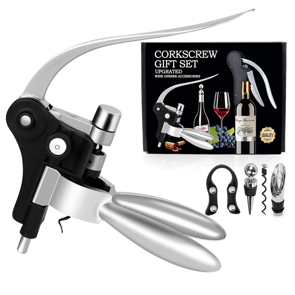 ชุดที่เปิดขวดไวน์แบบไม่ติดที่เปิดขวดไวน์6ชิ้นพร้อมที่ตัดฟอยล์จุกขวด