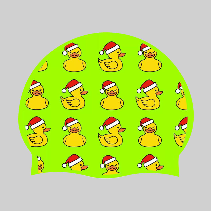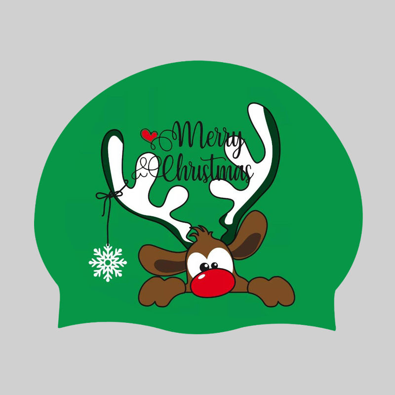 หมวกว่ายน้ำลายคริสต์มาสเปิด/ปิดง่ายสำหรับผู้ใหญ่ผมสั้นยาวสำหรับผู้ชายผู้หญิงทำจากซิลิโคน