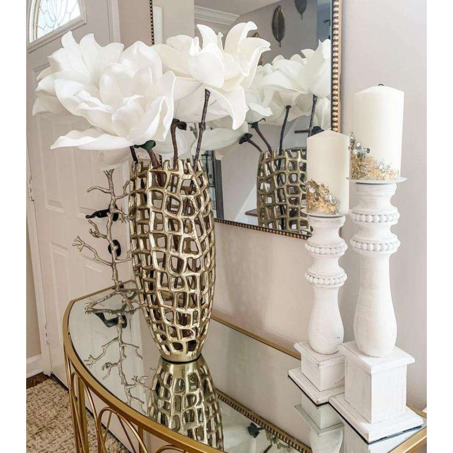 แจกันดอกไม้โลหะนูนสีทอง