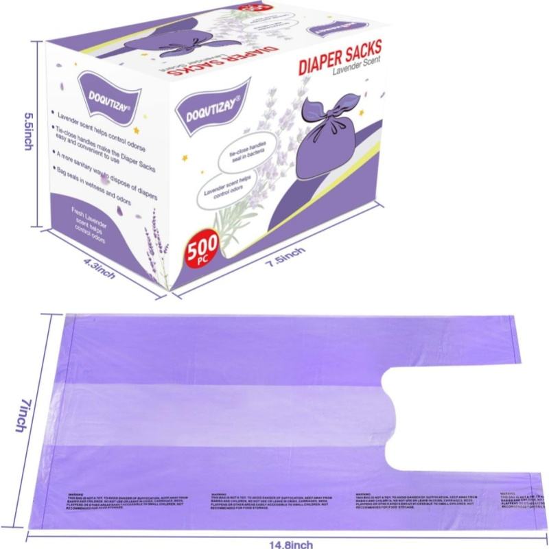 ถุงใส่ผ้าอ้อมเด็กสีม่วงลาเวนเดอร์แบบใช้แล้วทิ้งถุงขยะสำหรับสัตว์เลี้ยงสีม่วงย่อยสลายได้ง่าย