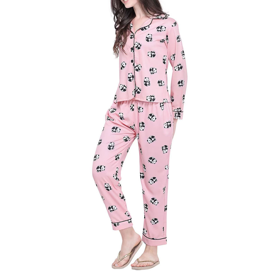 ชุดนอนผู้หญิงผ้าซาตินแขนยาว ใส่สบาย ระบายอากาศได้ดี คุณภาพสูง