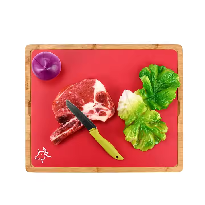 Bamboo Chopping Board Set with 6 Color-Coded Flexible Cutting Mats