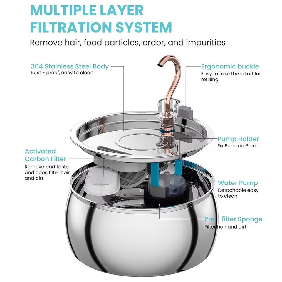 Keyword:4L stainless steel pet water fountain, automatic pet drinking fountain