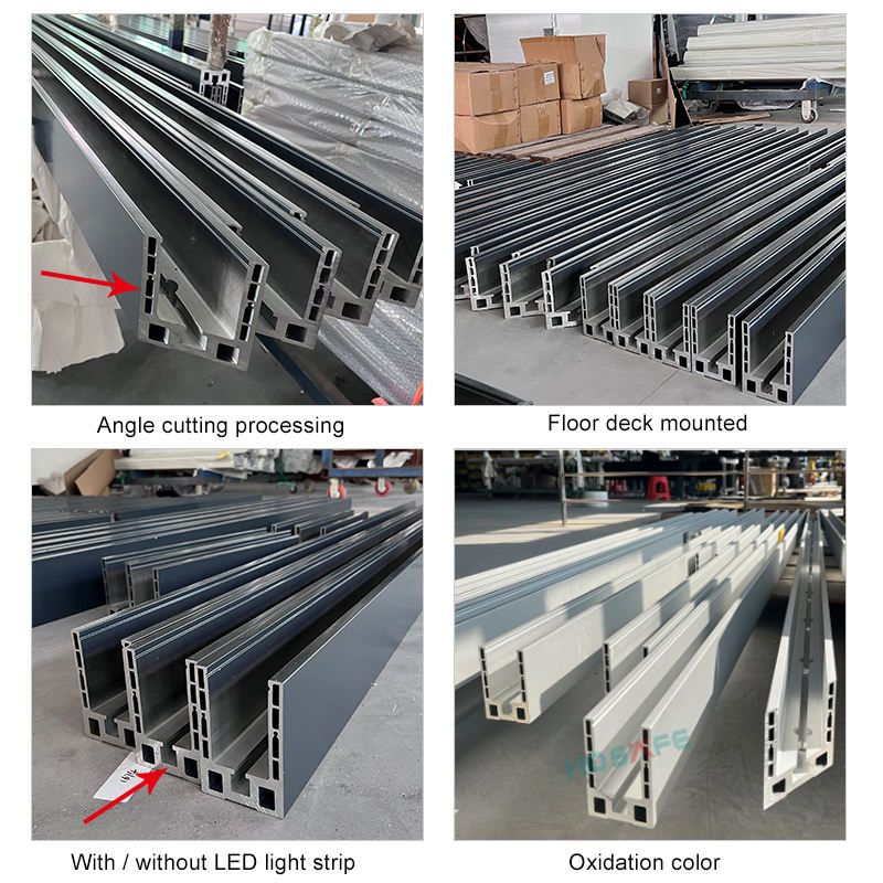 ราวบันไดกระจกอลูมิเนียมไฟ LED ติดง่ายราวระเบียงราวบันไดแบบไม่มีกรอบทันสมัย