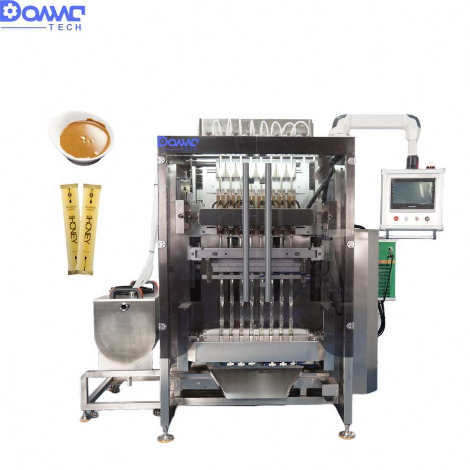 เครื่องบรรจุซองซอสแบบอัตโนมัติเต็มรูปแบบ ใช้งานง่าย สำหรับซอสมะเขือเทศ เนยถั่ว มัสตาร์ด ซอสพริกหวาน และของเหลวอื่นๆ