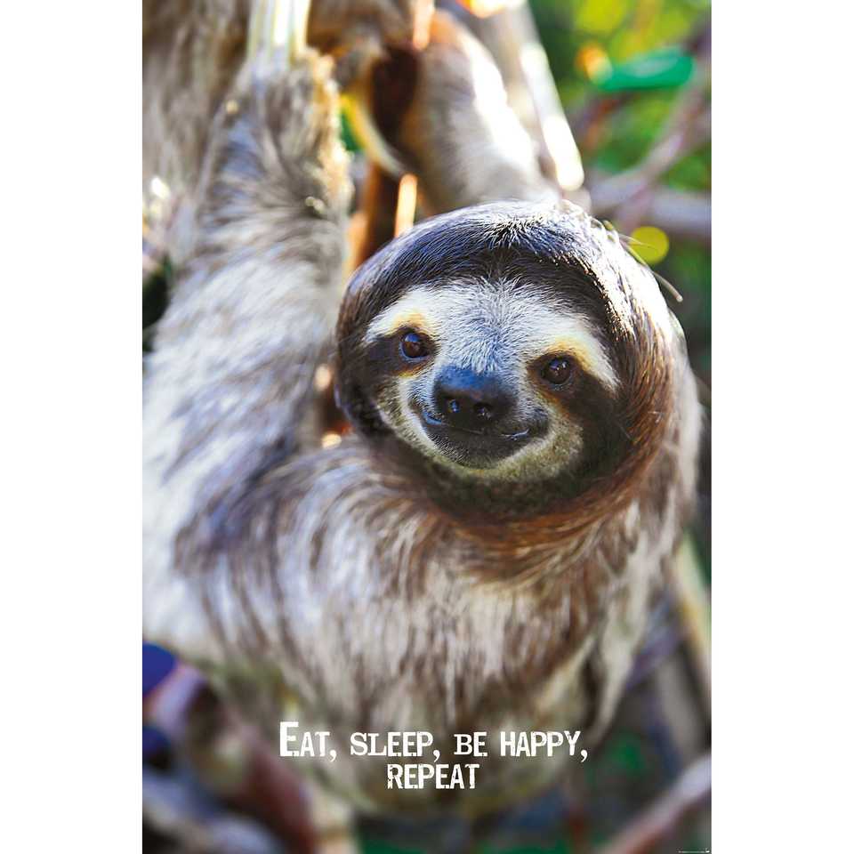 โปสเตอร์ผ้าใบสไตล์โมเดิร์น "กิน นอน ร่าเริง ซ้ำซาก" สำหรับติดผนัง