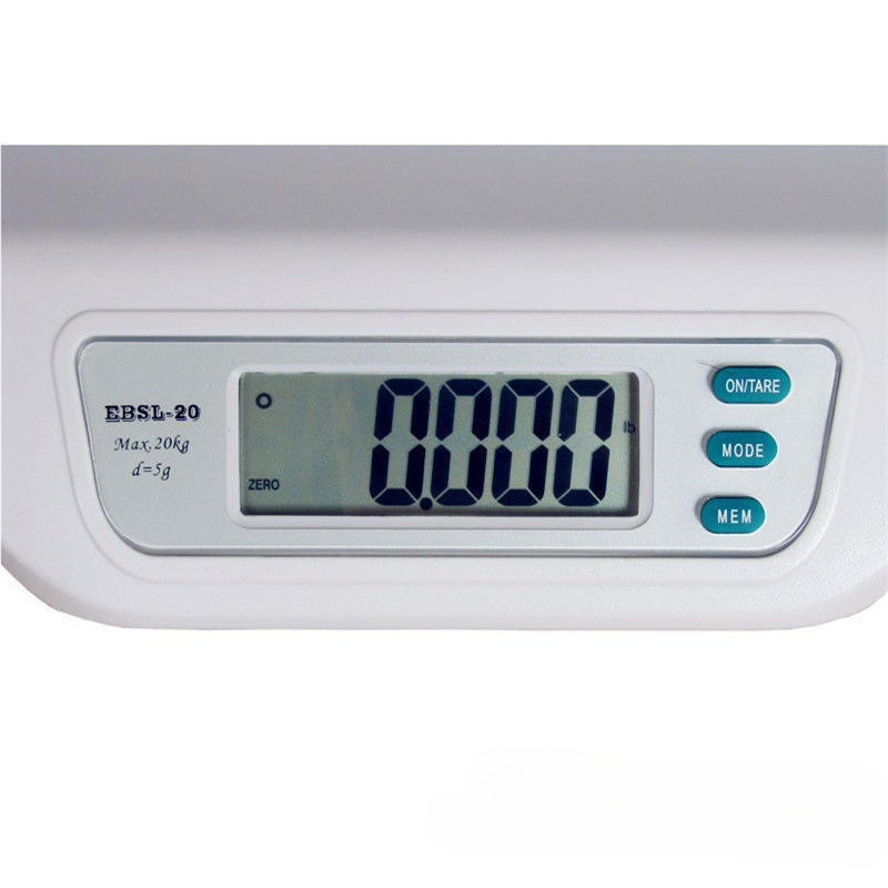 เครื่องชั่งน้ำหนักเด็กดิจิตอล Ebsl 20 กก. พร้อมถาดชั่งสีขาวรูปสี่เหลี่ยมผืนผ้า ใช้พลังงานจากแบตเตอรี่แบบชาร์จได้
