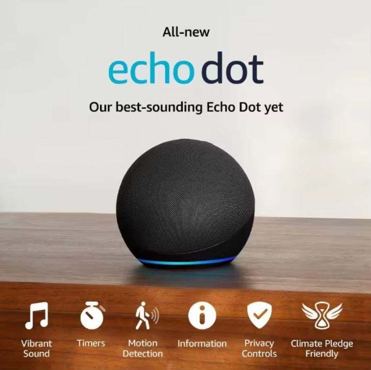 ลำโพงอัจฉริยะ Echo Dot รุ่นที่ 5 พร้อมระบบควบคุมด้วยเสียง Alexa รวมอุปกรณ์เสริมทั้งหมด