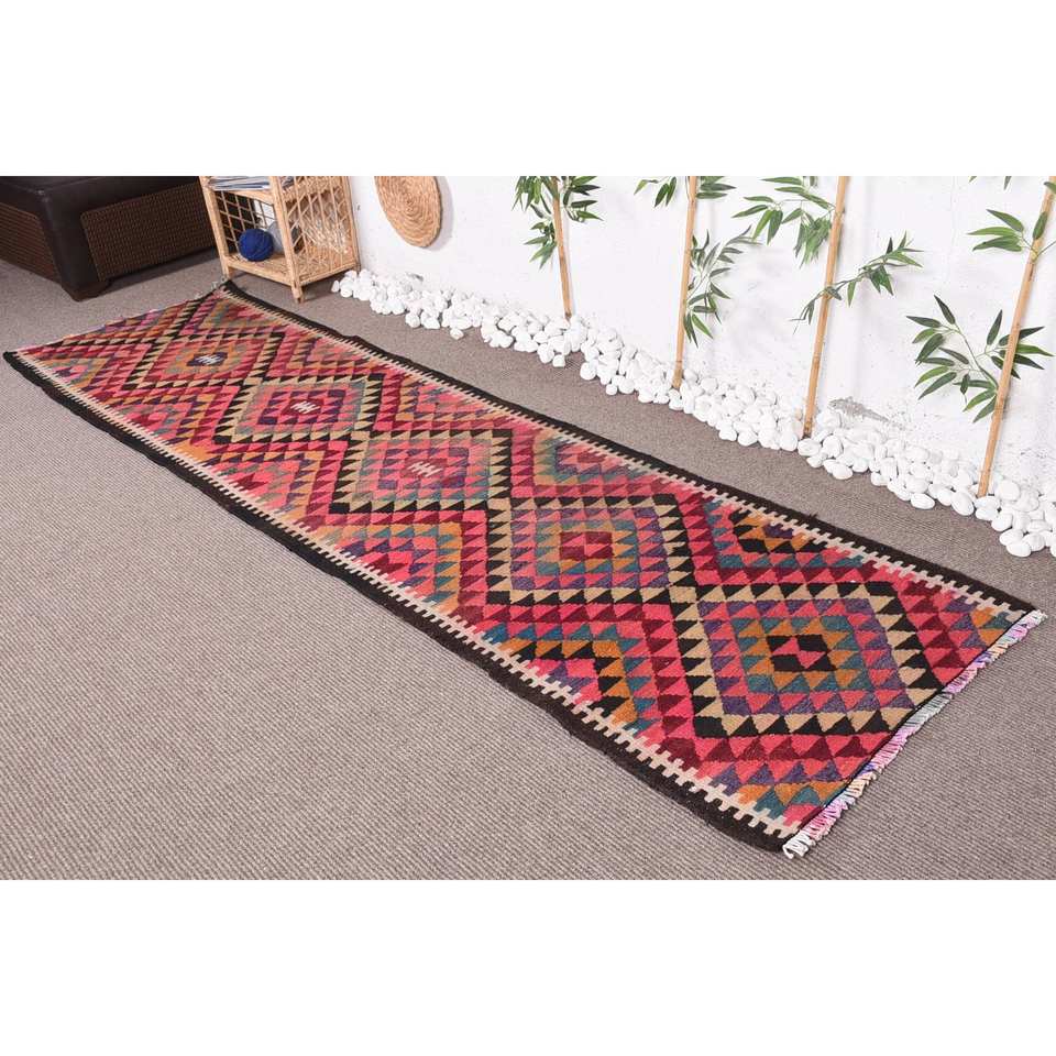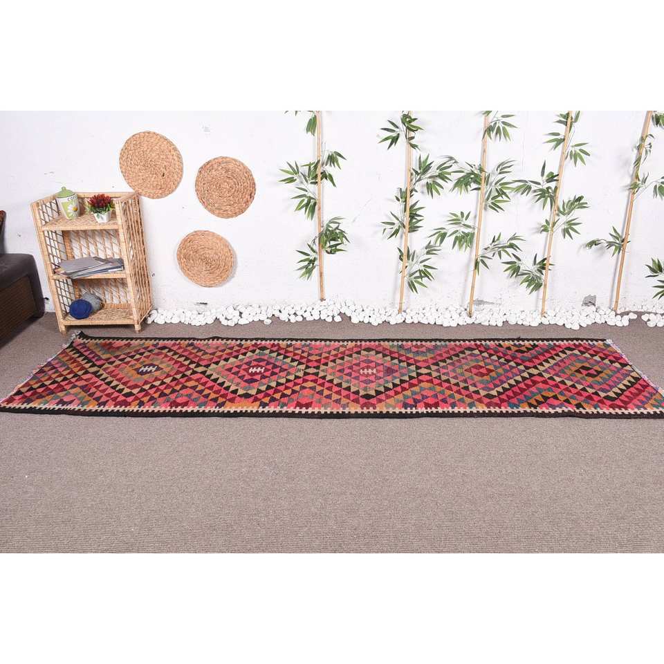 พรมตุรกีแนววินเทจแบบผสมผสานขนแกะสีเบจขนาดใหญ่2.8 x 10.2ft การออกแบบต่อกันสำหรับห้องโถงข้างเตียงน้ำยาง