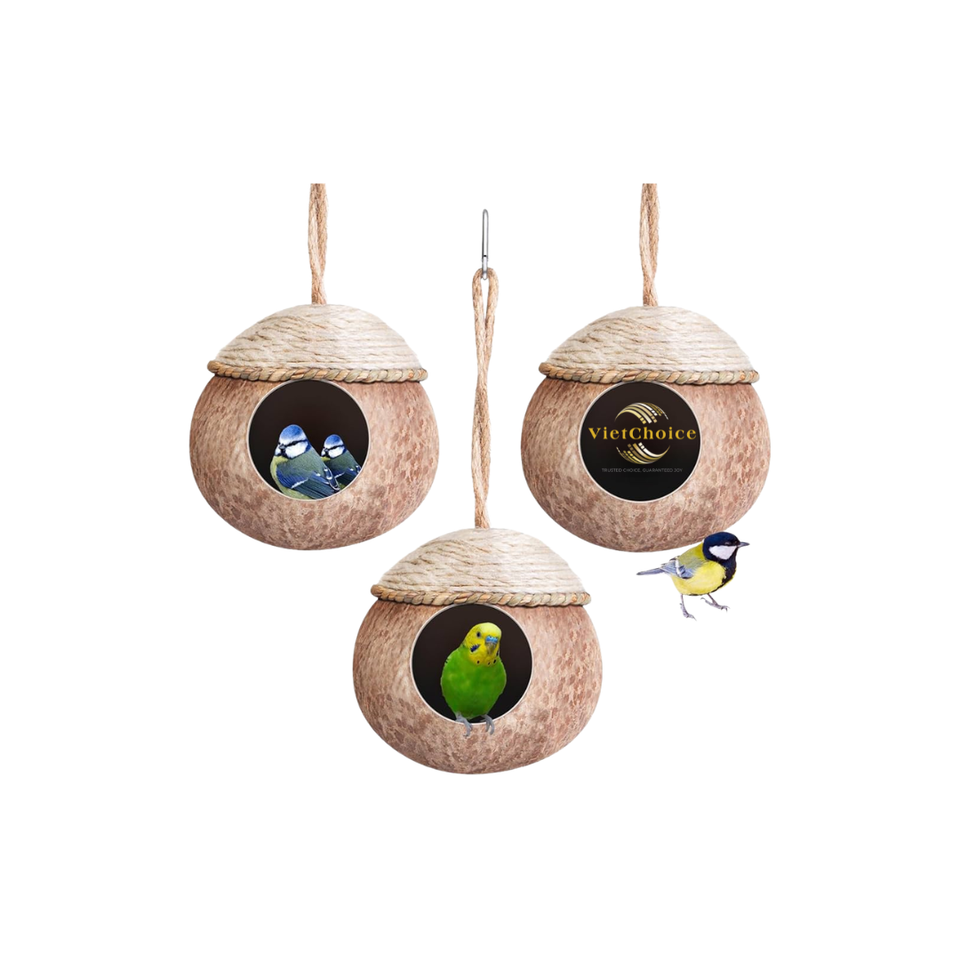 กรงนกมะพร้าวแบบมีสติเป็นมิตรต่อสิ่งแวดล้อมบ้านธรรมชาติทำมือสำหรับนกและกรงสัตว์เลี้ยง