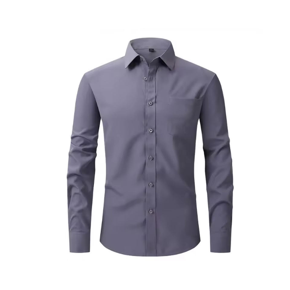 เสื้อเชิ้ตแขนยาวผู้ชายแบบลำลอง ผลิตจากผ้าฝ้ายผสมที่ยั่งยืน พร้อมสีที่ย้อมแบบมีประสิทธิภาพต่ำต่อสิ่งแวดล้อม