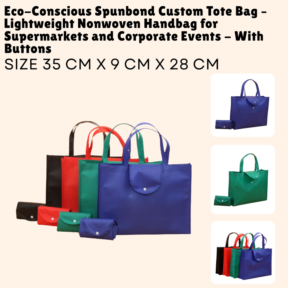 เป็นมิตรกับสิ่งแวดล้อม spunbond กระเป๋าโท้ทแบบกำหนดเองกระเป๋าถือที่มีน้ำหนักเบาไม่ทอสำหรับซูเปอร์มาร์เก็ตและกิจกรรมขององค์กรที่มีกระดุม