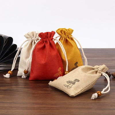 ถุงหูรูดหูหิ้วทำจากผ้านอนวูฟเวนเกรดอาหารเป็นมิตรกับสิ่งแวดล้อมถุงช้อปปิ้งบรรจุภัณฑ์เครื่องประดับโทรศัพท์มือถือแนววินเทจที่ทนทาน