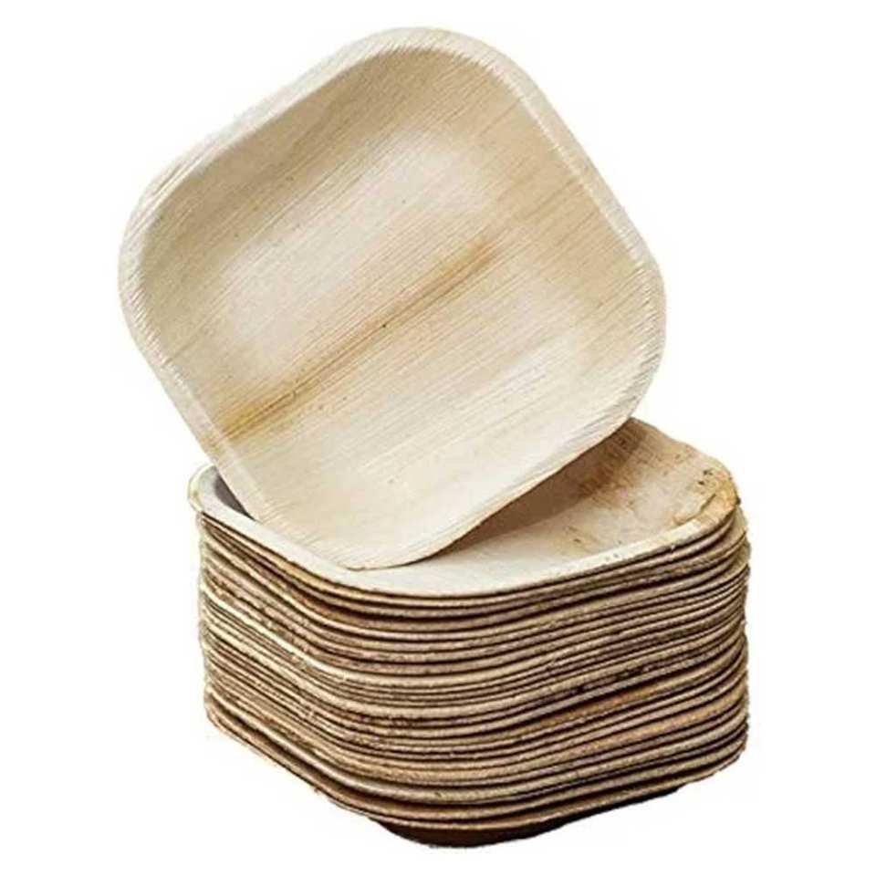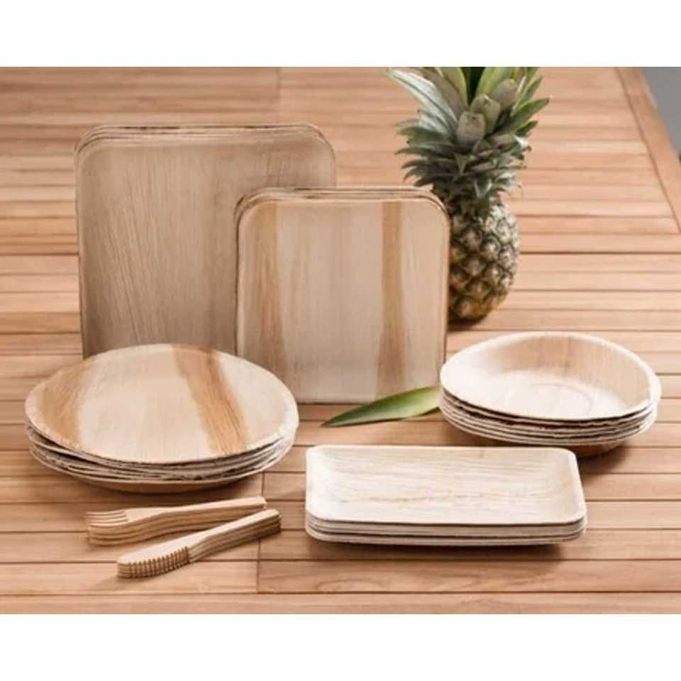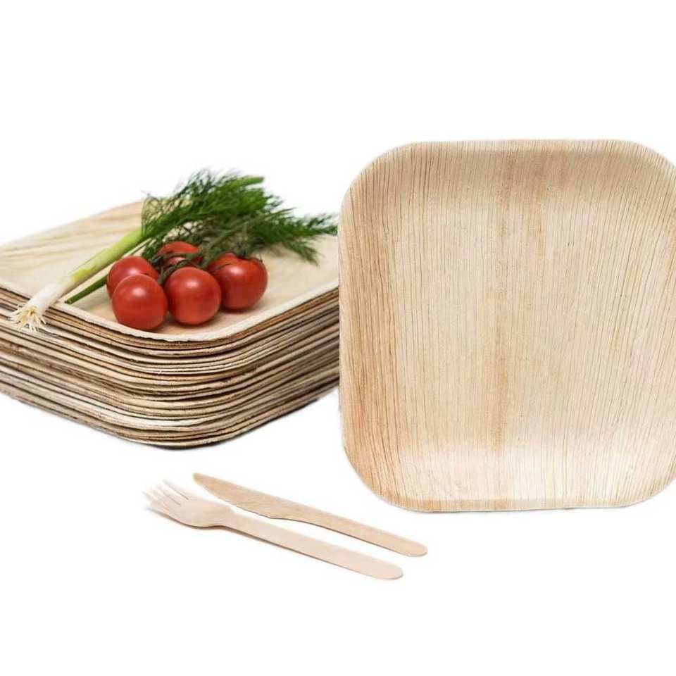 แผ่นจานใบปาล์มทรงสี่เหลี่ยมแบบใช้แล้วทิ้งเป็นมิตรกับสิ่งแวดล้อมเครื่องใช้บนโต๊ะอาหารแบบย่อยสลายได้ตามธรรมชาติ