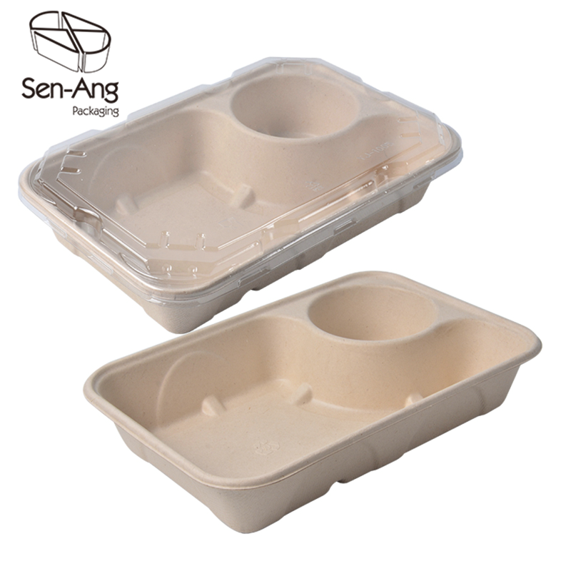 กล่องอาหารกลางวันแบบใช้แล้วทิ้งถาดใส่อาหาร5ช่องสำหรับนำเข้าไมโครเวฟได้ย่อยสลาย100% เป็นมิตรกับสิ่งแวดล้อม