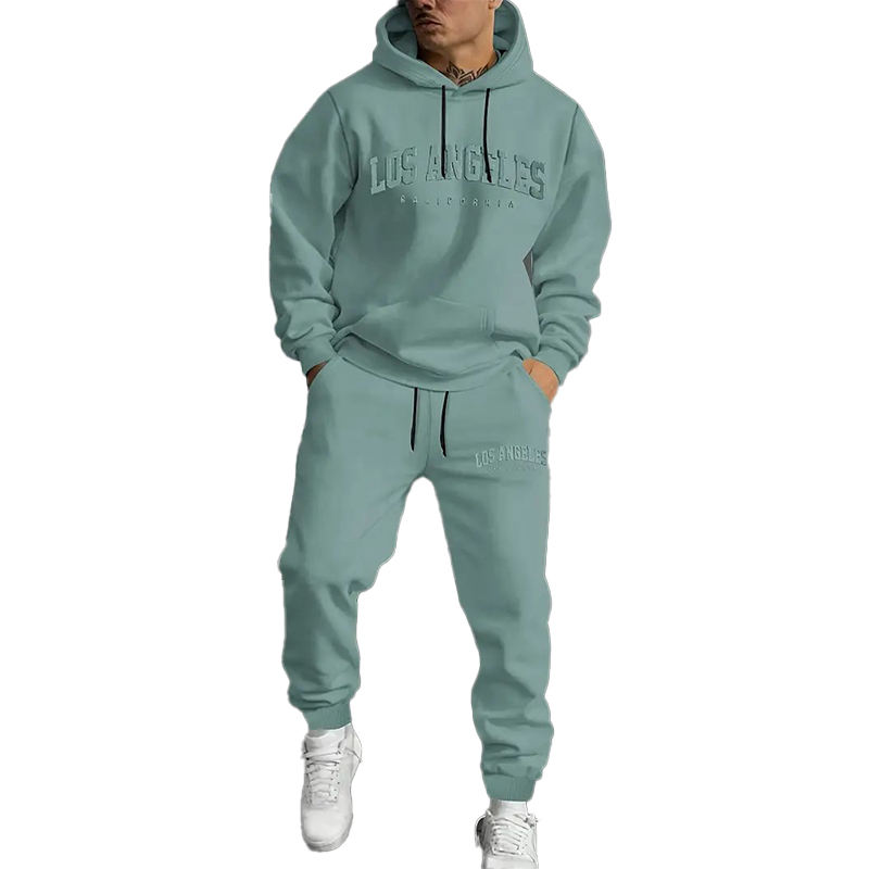 ชุดเซ็ตเสื้อฮู้ดดี้และกางเกงขายาวสีเขียวมิ้นท์พิมพ์ลาย ทรงปกติ ผ้าฝ้าย 100% เป็นมิตรกับสิ่งแวดล้อม สำหรับผู้ชาย รุ่นลอสแอนเจลิส