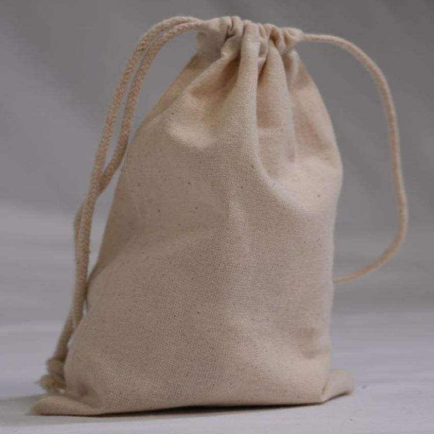 Eco-Friendly 100% Cotton Drawstring Pouch Custom Logo Elegant Soft Storage Dust Bag Reusable Fashionable Handbag Portable for