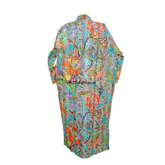 ชุดคลุมกิโมโนผ้าฝ้าย 100% ลายดอกไม้ คอวี สำหรับผู้หญิง สไตล์อินเดียโบราณ ทำมือ รักษ์โลก เหมาะสำหรับฤดูหนาว