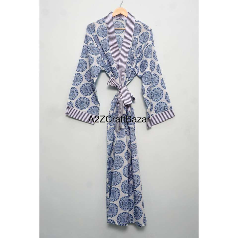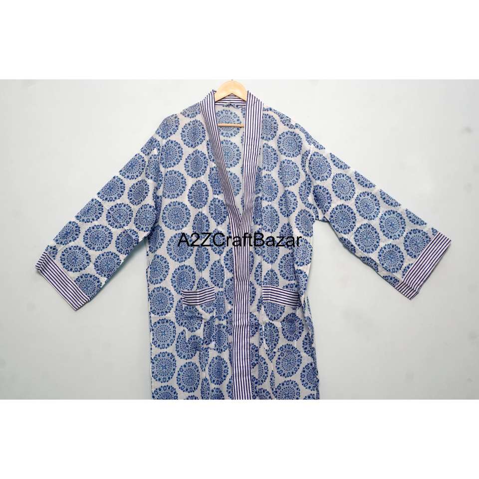 เสื้อคลุมกิโมโนคอวีผ้าฝ้าย 100% เป็นมิตรกับสิ่งแวดล้อม ซักได้ นุ่มสบาย ลายดอกไม้ แขนสามส่วน แห้งเร็ว ใส่ได้ทั้งฤดูร้อนและฤดูหนาว