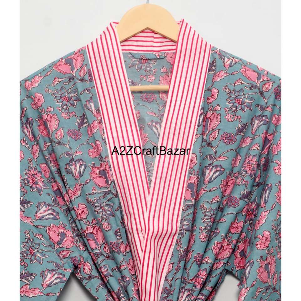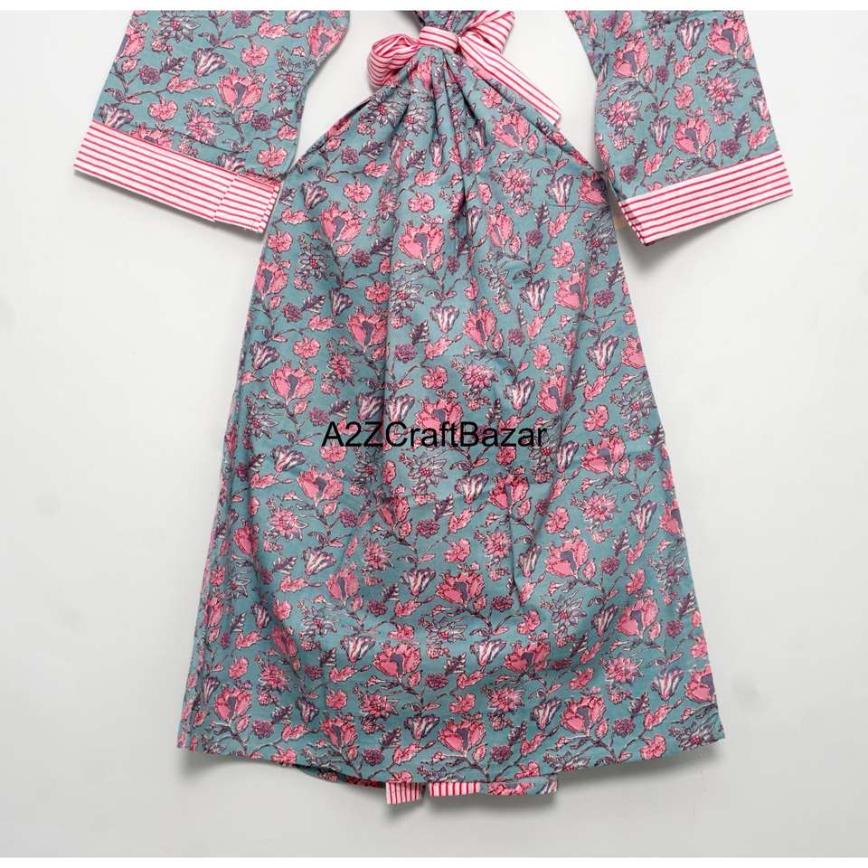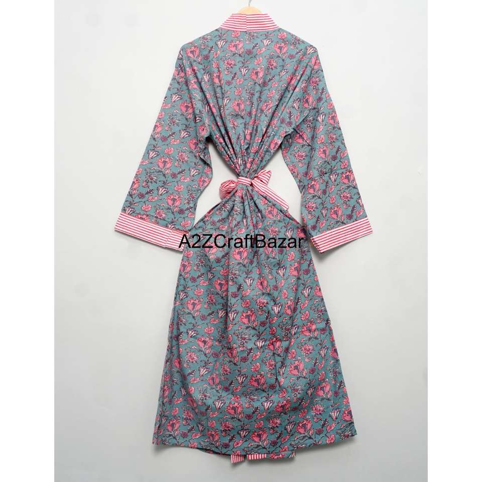 Eco-Friendly 100% Pure Cotton Breathable Washable Kimono Robe Dressing Gown Floral Print Bridesmaid Winter/Summer Nightwear