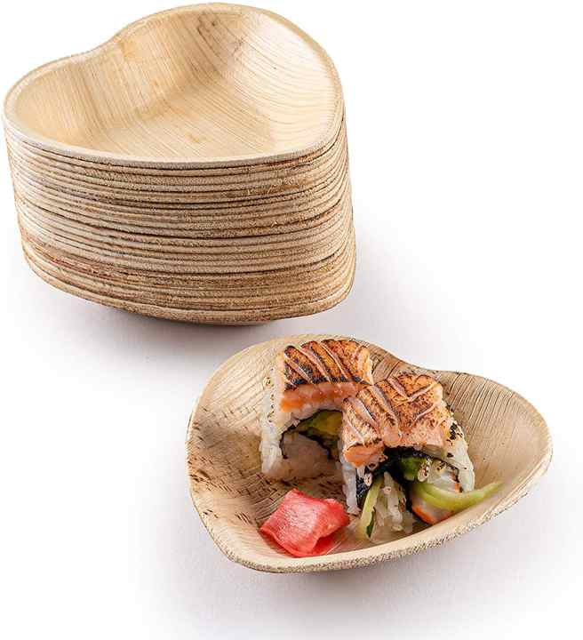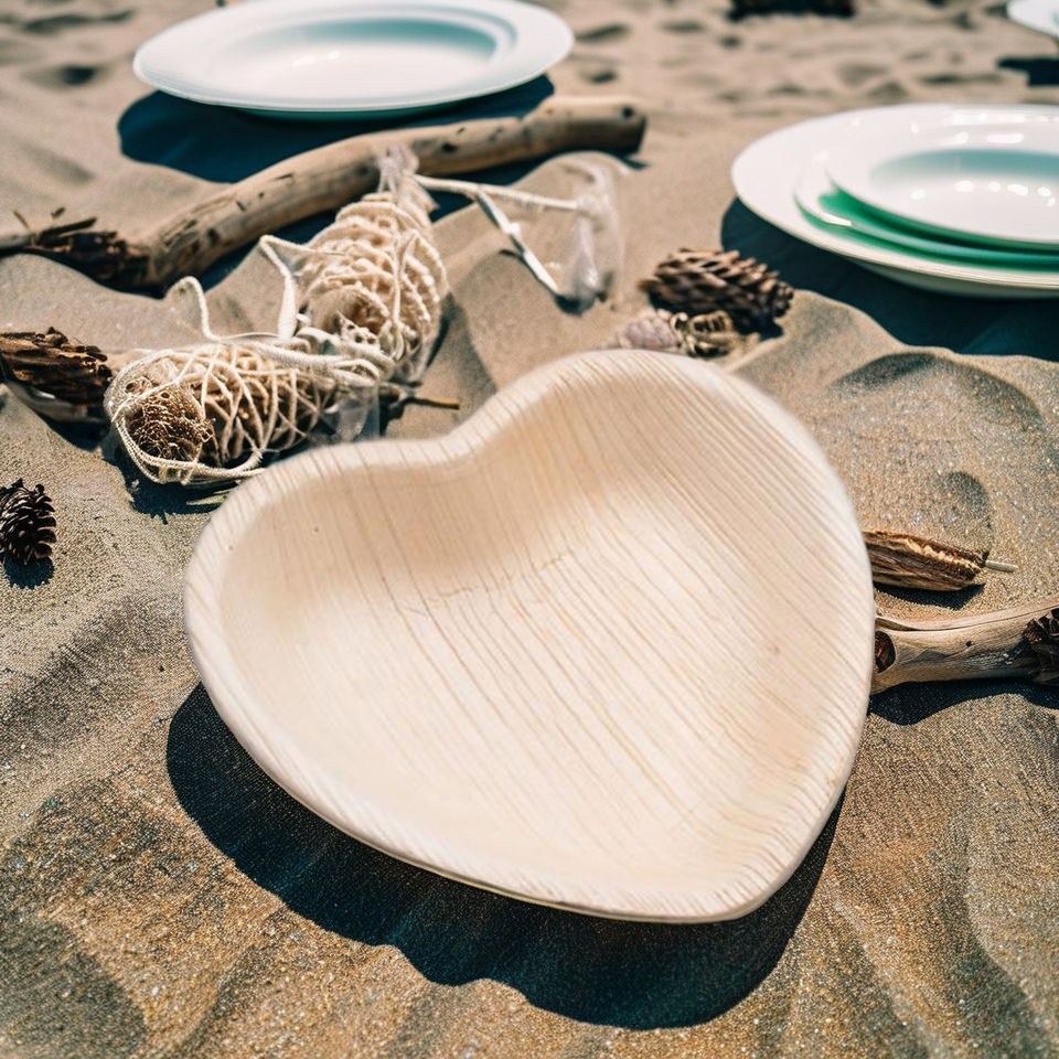 แผ่นใบปาล์ม Areca รูปหัวใจแบบใช้แล้วทิ้ง16ซม. เป็นมิตรกับสิ่งแวดล้อมเครื่องใช้สำหรับงานเลี้ยงและแคมป์