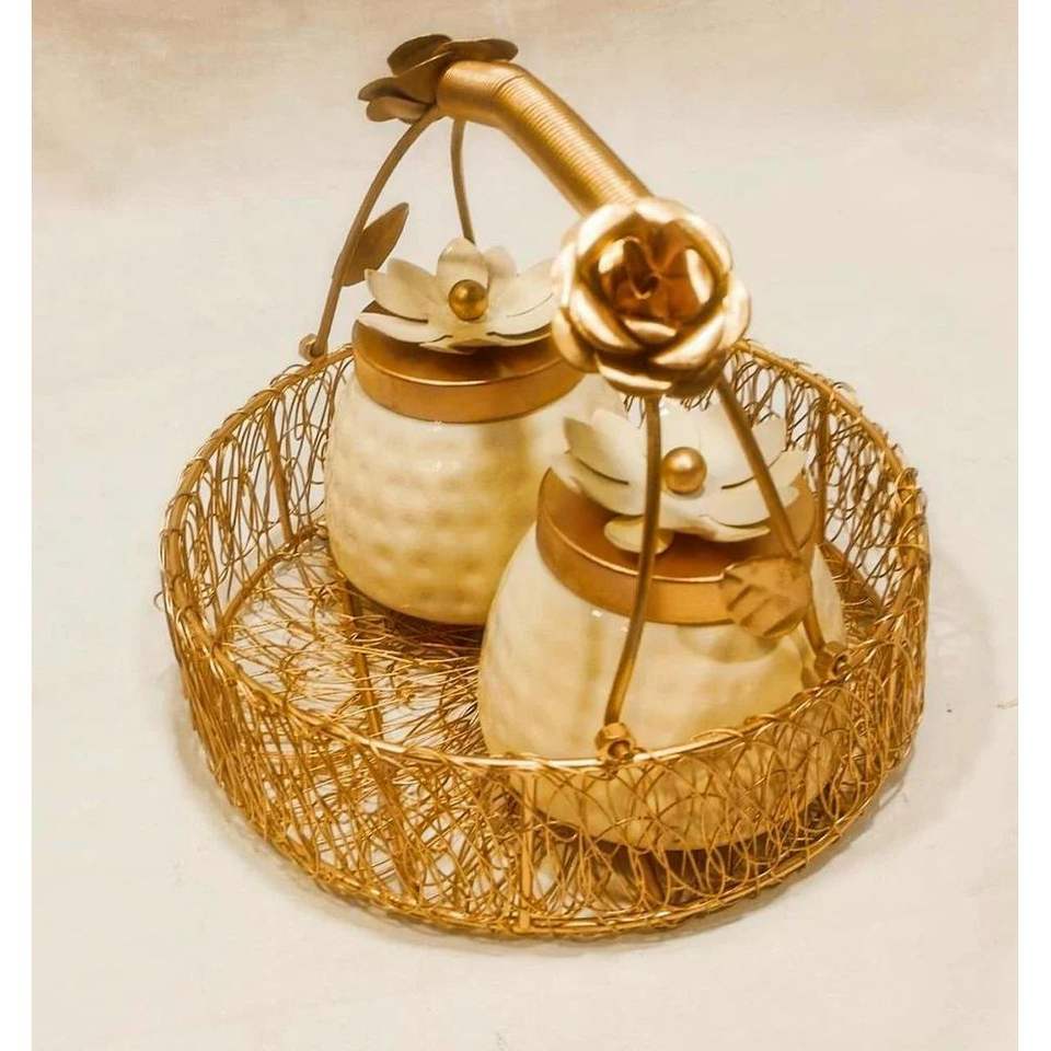 กระปุกใส่ขนมแห้ง/คุกกี้ ขนาด 400 มล. แบบเป็นมิตรต่อสิ่งแวดล้อม ทำจากโลหะ พร้อมถาดลายดอกไม้ สำหรับร้านอาหารและงานเลี้ยง วัสดุ PC