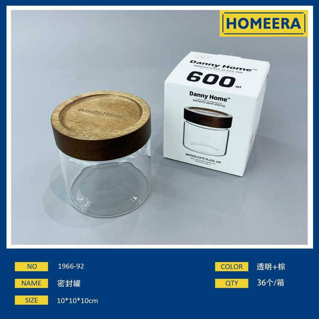 Eco-Friendly 600ml Sealed Glass Jar Wooden Lid 10x10x10cm Kitchen Storage Spices Jar Cover Condiments Container for Restaurants