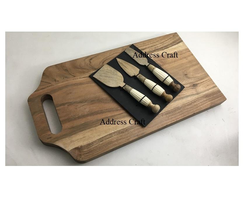 Eco Friendly Acacia Wood Chopping Board and Cheese Set Cheese Spreader Butter Slicer Agate Stone Cheese Set Cutting Board Set