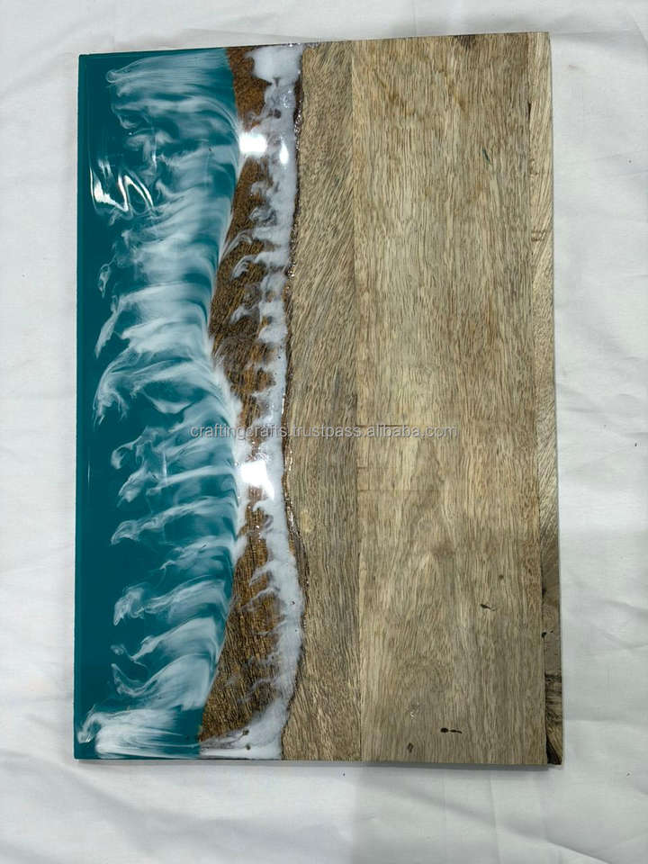 Eco-Friendly Acacia Wood Resin Square Wave Charcuterie Board Set 4-Piece Coasters 10MM Thick Custom Size Modern Design