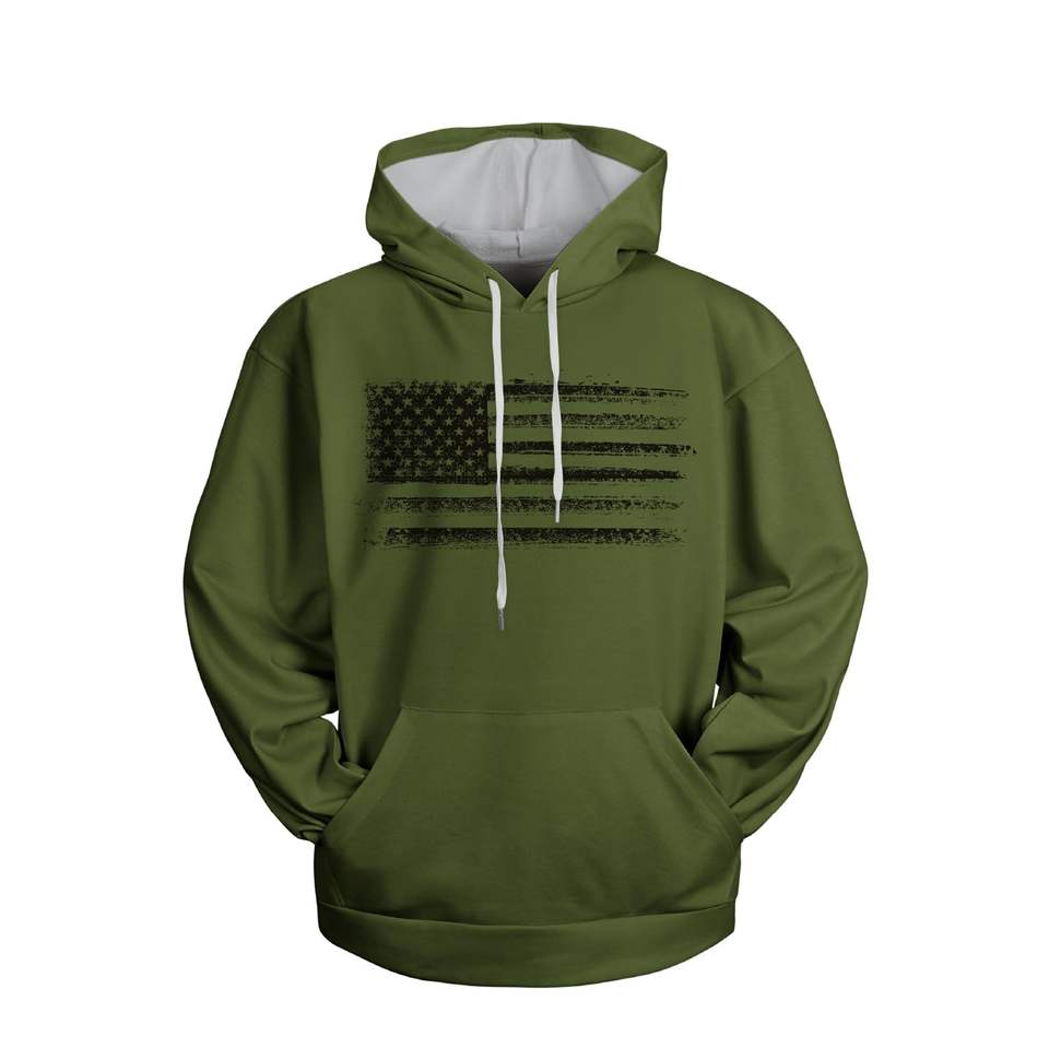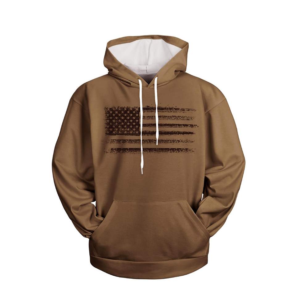 เสื้อมีฮู้ดลายธงชาติอเมริกันของผู้ชายเสื้อสวมหัวแขนยาวผ้าฝ้ายอินทรีย์ผสมเป็นมิตรกับสิ่งแวดล้อม
