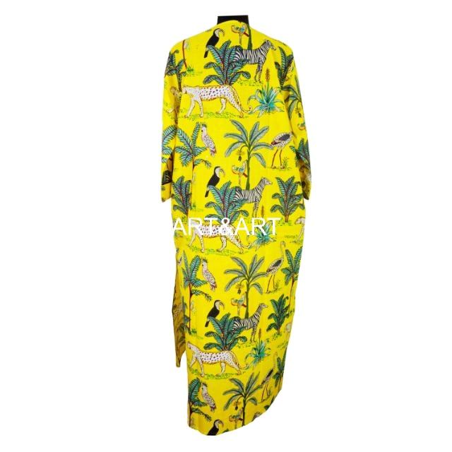ชุด Maxi MIDI เดรสคอวีแขน3/4พิมพ์ลายสัตว์เป็นมิตรกับสิ่งแวดล้อมสไตล์หวานๆชายหาดปาร์ตี้ซักได้