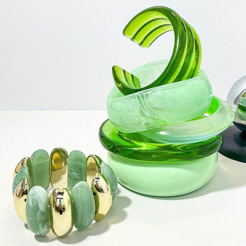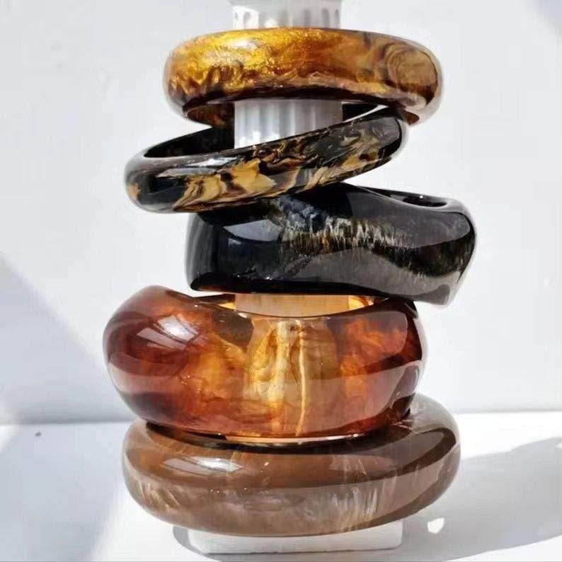 กำไลเรซิ่นลายฉลุสีทองโบราณแบบเป็นมิตรกับสิ่งแวดล้อม พร้อมลวดลายเรขาคณิต สีปรับแต่งได้ งานฝีมืออินเดีย