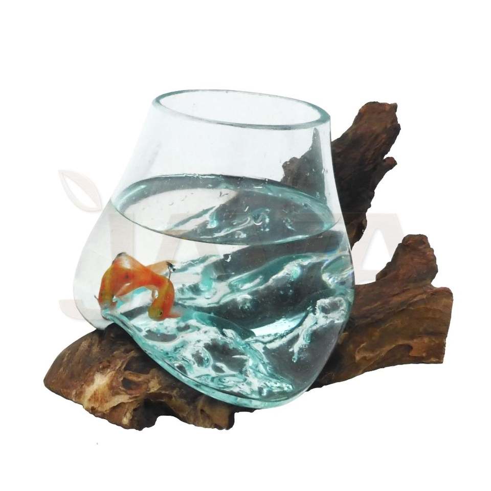 ตู้ปลาและตู้เลี้ยงสัตว์น้ำแบบเป็นมิตรกับสิ่งแวดล้อม พร้อมฐานไม้ธรรมชาติและกระจก ความจุ 2 ลิตร