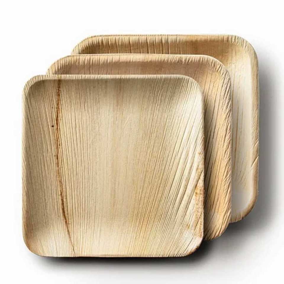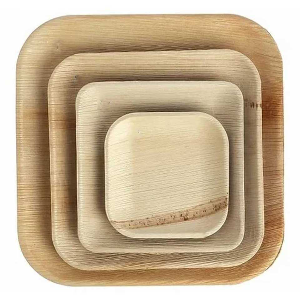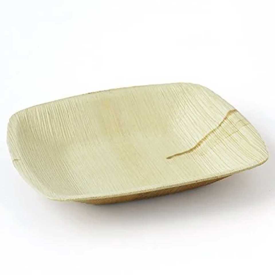 จานทรงสี่เหลี่ยมลึกใบปาล์มย่อยสลายได้ลึก3.5ซม. เป็นมิตรกับสิ่งแวดล้อมเครื่องใช้บนโต๊ะอาหารแบบใช้แล้วทิ้ง