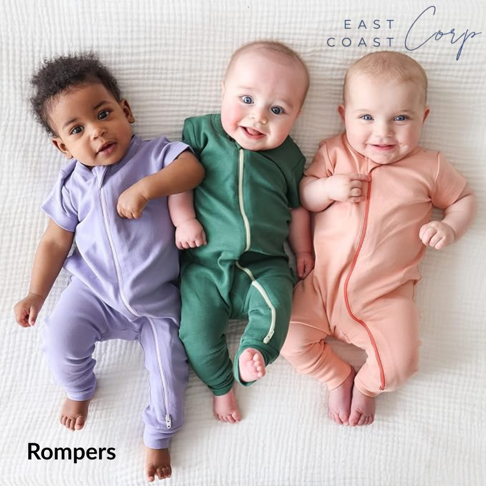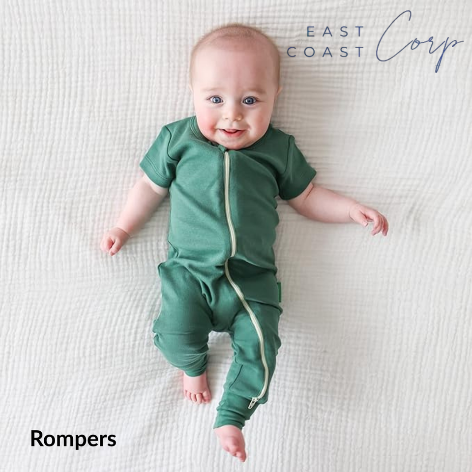 ชุดรอมเปอร์เด็กทารกเป็นมิตรกับสิ่งแวดล้อม | ชุดซิปออร์แกนิคแขนสั้น