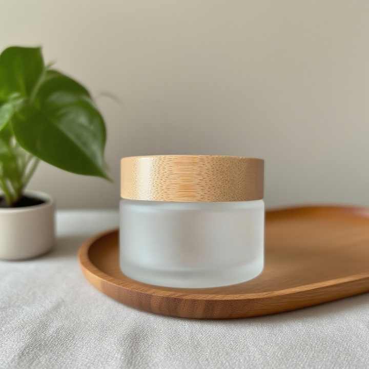 ขวดแก้วเนื้อฝ้าสำหรับบรรจุบัตเตอร์บำรุงผิวจากไม้ไผ่รักษ์โลก ขนาด 100 กรัม 100 มล. พร้อมฝาปิด สำหรับครีมบำรุงผิวหน้าและผิวกาย