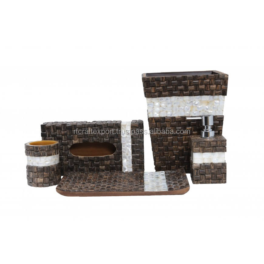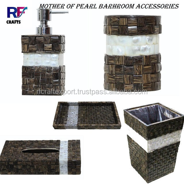 Eco-Friendly Bathroom Set Accessories with Mother Pearl Tadi Wood Tumbler Origin Type Product of High Design Quality