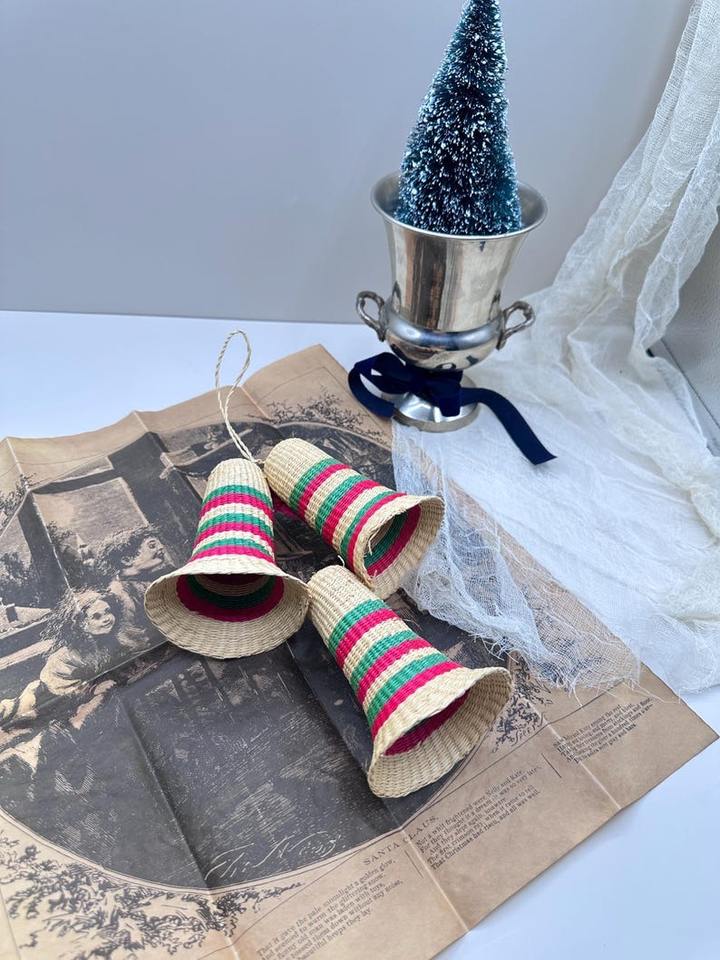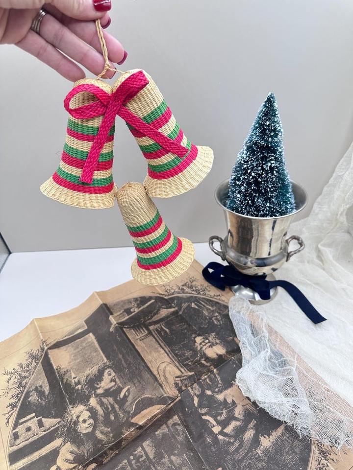 เครื่องประดับคริสต์มาสรูปกระดิ่งทำจากหญ้าทะเล งานแฮนด์เมด เป็นมิตรกับสิ่งแวดล้อม ขายดีที่สุด สำหรับตกแต่งบ้าน จำหน่ายจำนวนมาก