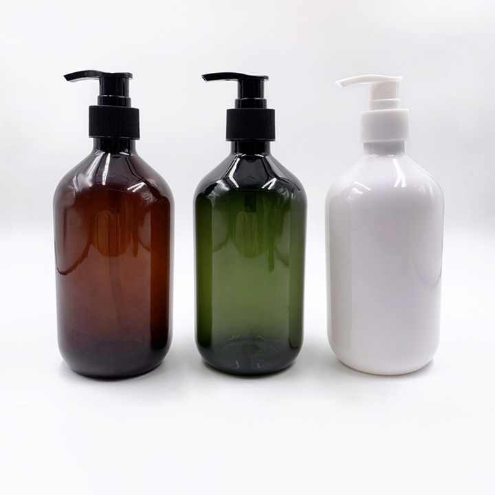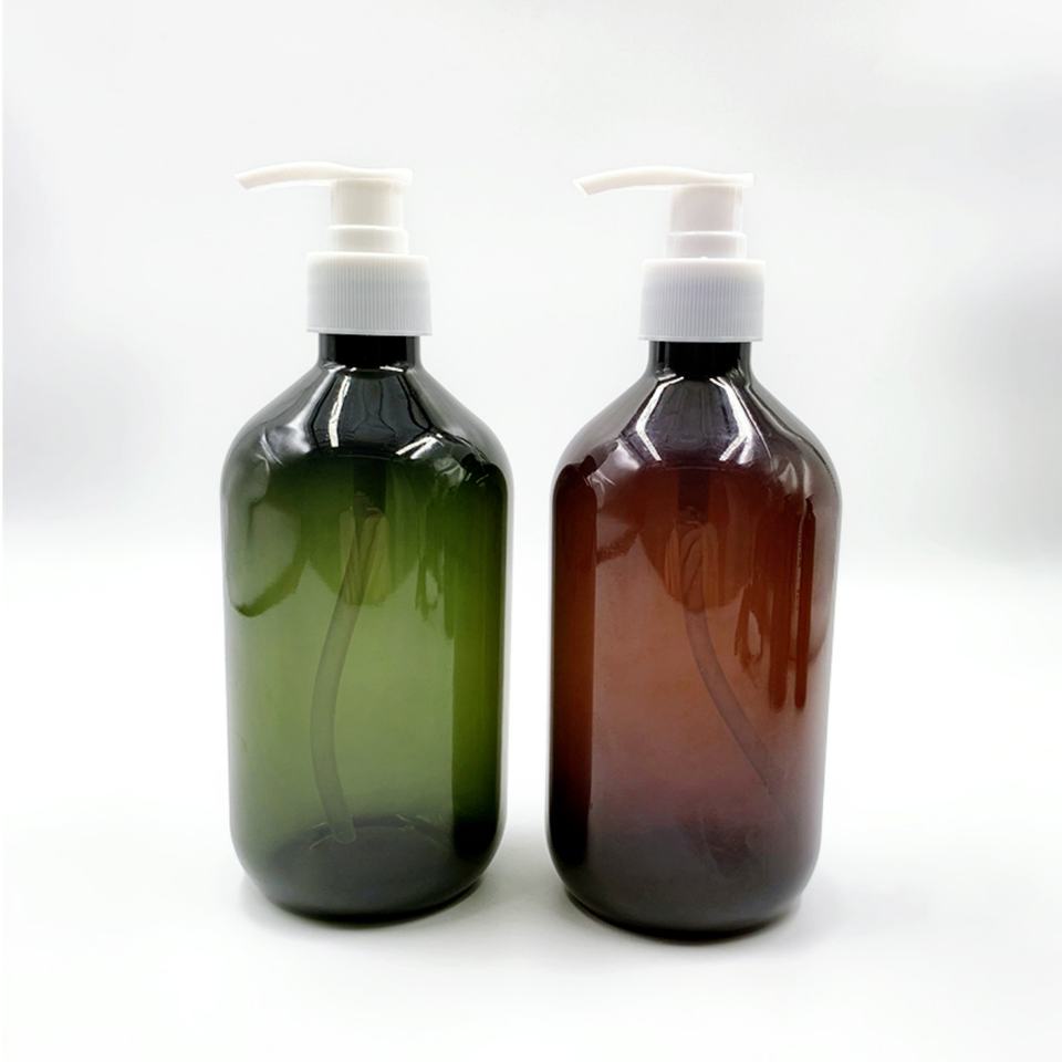 ขวดพลาสติกแบบปั๊มสำหรับบรรจุภัณฑ์แชมพู สีเหลืองอำพันและสีเขียว ขนาด 300 มล. 500 มล. เป็นมิตรกับสิ่งแวดล้อม ย่อยสลายได้ทางชีวภาพ เหมาะสำหรับเจลอาบน้ำและโลชั่น