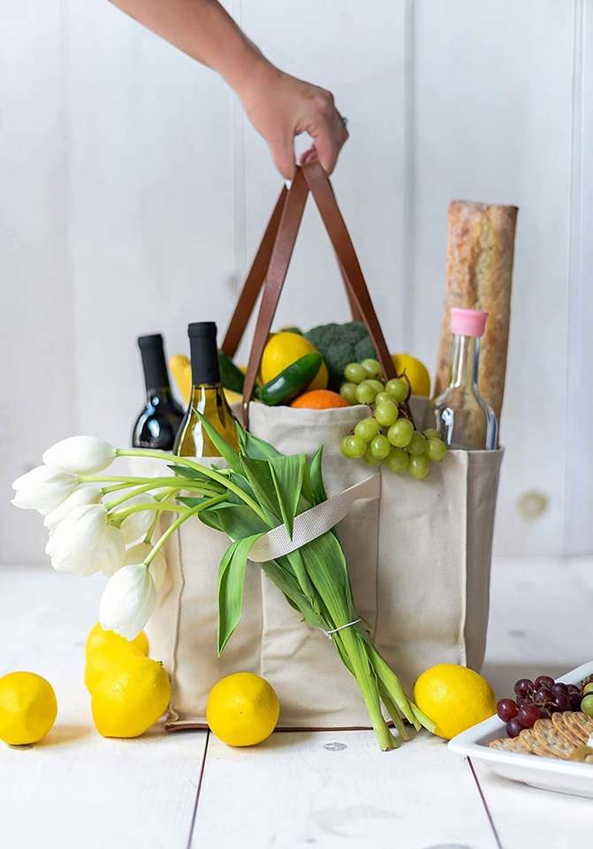 กระเป๋าผ้าแคนวาสแบบย่อยสลายได้เป็นมิตรกับสิ่งแวดล้อม 7 ช่อง สำหรับจัดระเบียบตลาดเกษตรกร ใส่ของปิกนิก อาหาร หรือของใช้ต่างๆ
