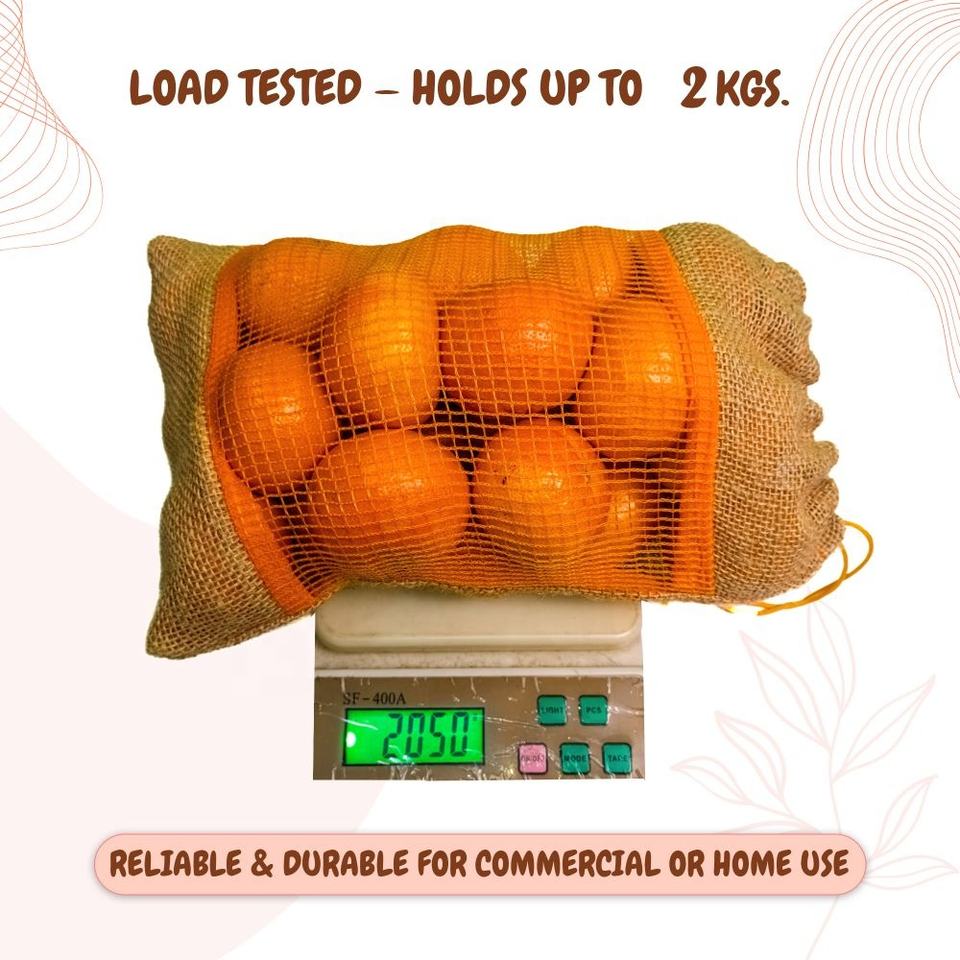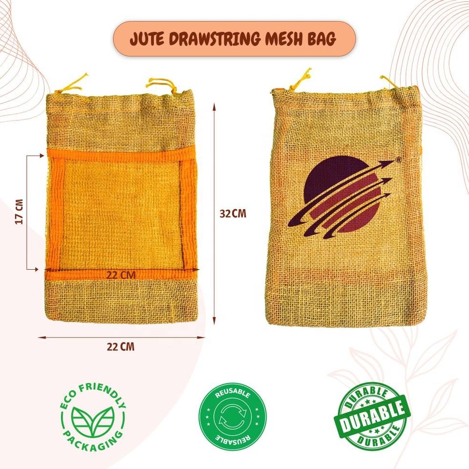 ถุงตาข่ายปอกระเจาแบบมีเชือกผูก ขนาด 32*22 ซม. เป็นมิตรกับสิ่งแวดล้อม ย่อยสลายได้ รับน้ำหนักได้ 2 กก. ใช้ซ้ำได้ ทนทาน ปลอดภัยสำหรับอาหาร เหมาะสำหรับใส่ของชำ