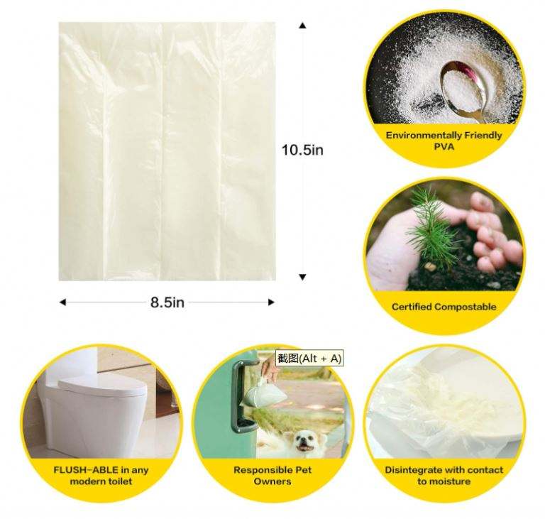 ถุงเก็บอุจจาระสัตว์เลี้ยงแบบย่อยสลายได้ทางชีวภาพ เป็นมิตรกับสิ่งแวดล้อม ทำจาก PVA ละลายน้ำได้ เหมาะสำหรับสัตว์เลี้ยงขนาดเล็ก เช่น แมว เพื่อสิ่งแวดล้อมที่ดีขึ้น