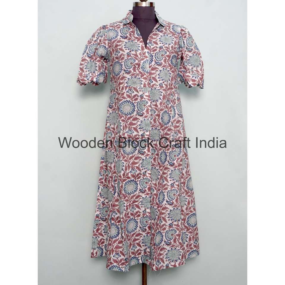 เดรสผ้าฝ้ายถักสไตล์โบฮีเมียนวินเทจรักษ์โลก ทรงเอไลน์ คอวี แขนสั้น แต่งกระดุม