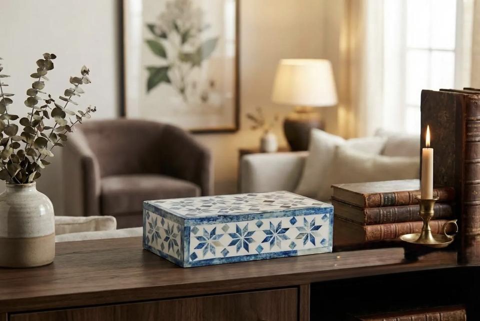 กล่องเครื่องประดับงานฝีมือลายดอกไม้โมร็อกโกแบบเป็นมิตรกับสิ่งแวดล้อม ตกแต่งด้วยกระดูกฝังลายดอกไม้ สำหรับเก็บของตกแต่งบ้าน ตกแต่งโต๊ะ ของขวัญปีใหม่