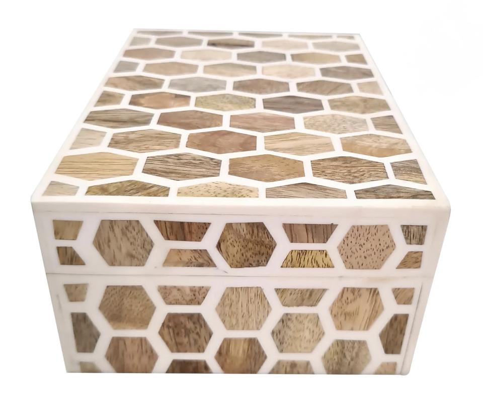 กล่องเครื่องประดับงานฝีมือลายดอกไม้โมร็อกโกแบบเป็นมิตรกับสิ่งแวดล้อม ตกแต่งด้วยกระดูกฝังลายดอกไม้ สำหรับเก็บของตกแต่งบ้าน ตกแต่งโต๊ะ ของขวัญปีใหม่