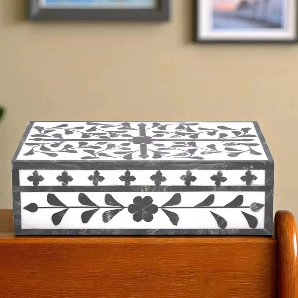 กล่องเครื่องประดับงานฝีมือลายดอกไม้โมร็อกโกแบบเป็นมิตรกับสิ่งแวดล้อม ตกแต่งด้วยกระดูกฝังลายดอกไม้ สำหรับเก็บของตกแต่งบ้าน ตกแต่งโต๊ะ ของขวัญปีใหม่