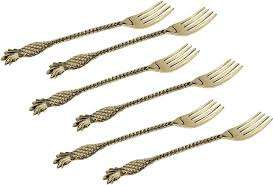 ส้อมทองเหลืองชุบทองสำหรับเค้กแบบแบนเป็นมิตรกับสิ่งแวดล้อมชุดคริสมาสต์ส้อมทองเหลืองสีทองสำหรับขายส่ง