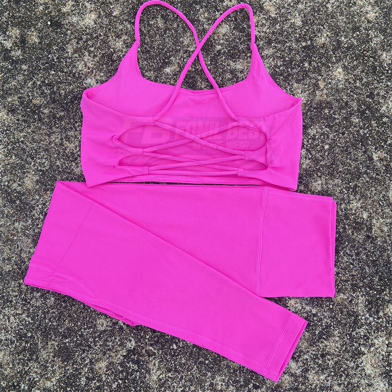 ชุดออกกำลังกายแบบ 2 ชิ้น เสื้อชั้นในและกางเกงเลกกิ้งลายเรียบ ระบายอากาศได้ดี เป็นมิตรกับสิ่งแวดล้อม เอวสูง ยืดหยุ่นได้ เหมาะสำหรับโยคะ