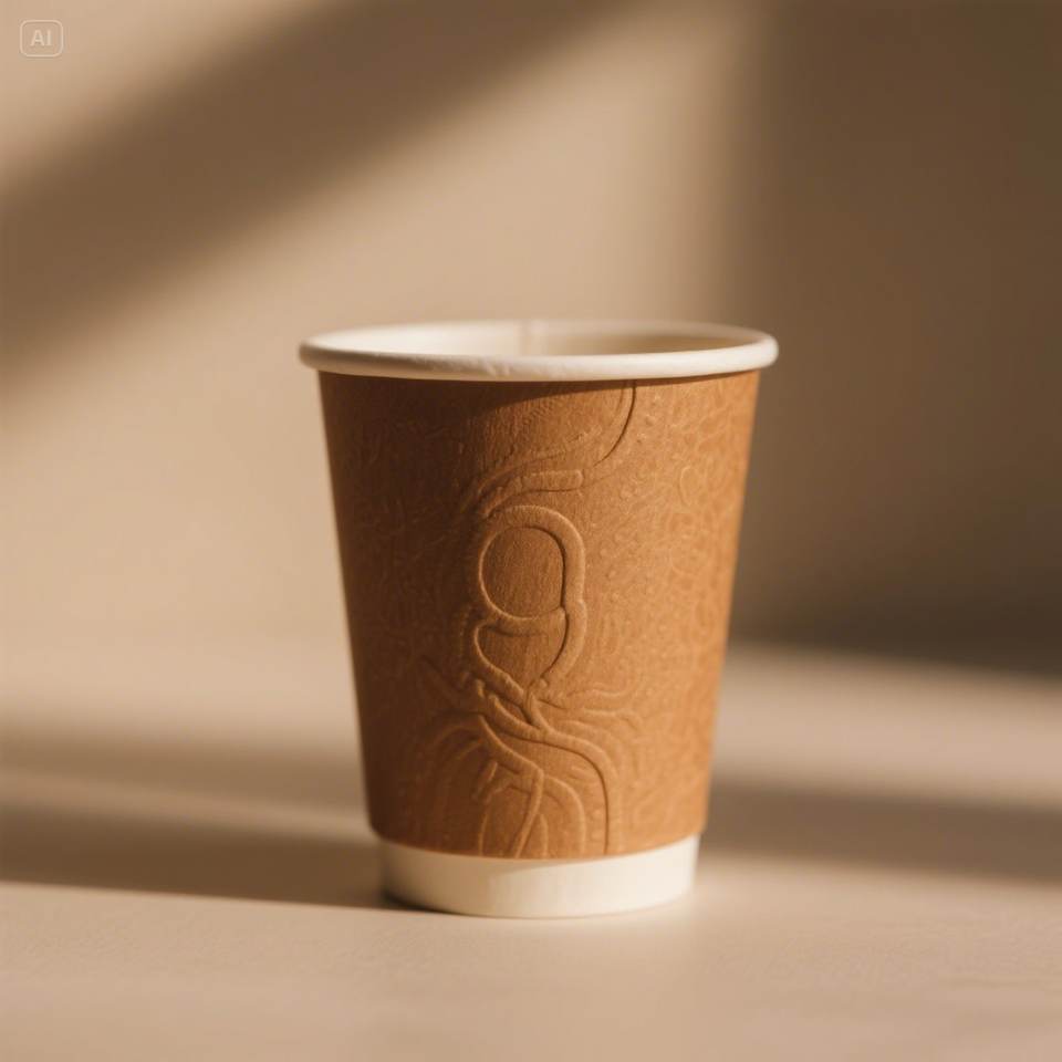 ถ้วยกระดาษสีน้ำตาลที่เป็นมิตรต่อสิ่งแวดล้อมพร้อมดีไซน์นูนสีขาวขนาด12ออนซ์100ใช้แล้วทิ้งและมีสไตล์